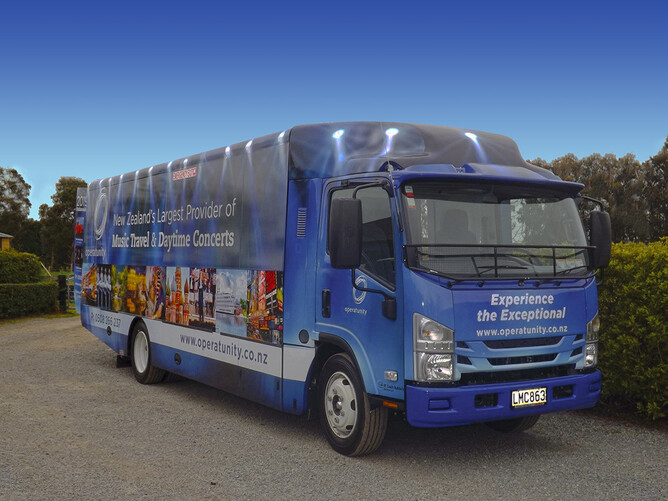 Latest fun project - designing the wrap for Operatunity's new tour bus. TW Graphics Ltd was tasked with delivering graphics that capture and reflect the range and and flavour of the Concerts, Shows and Travel packages that they have on offer.