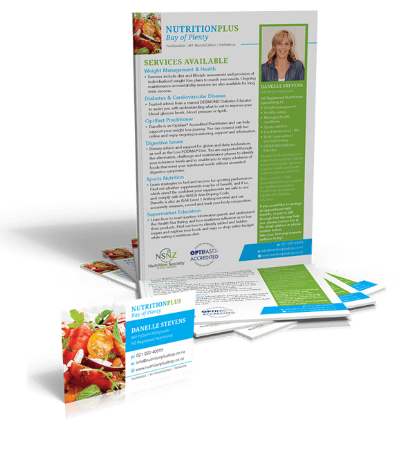 A recent example is the logo development and resource material produced for Registered Nutritionist Danelle Stevens at NutritionPlus Bay of Plenty.